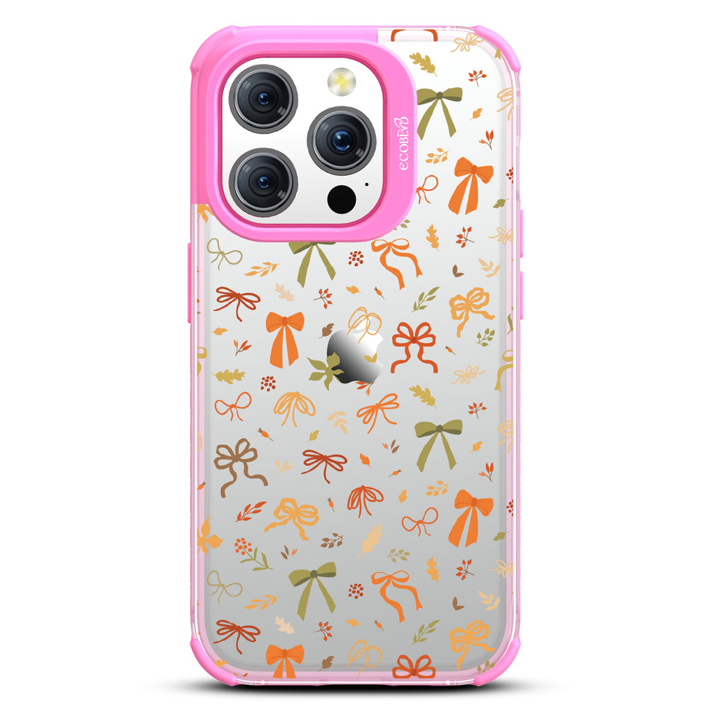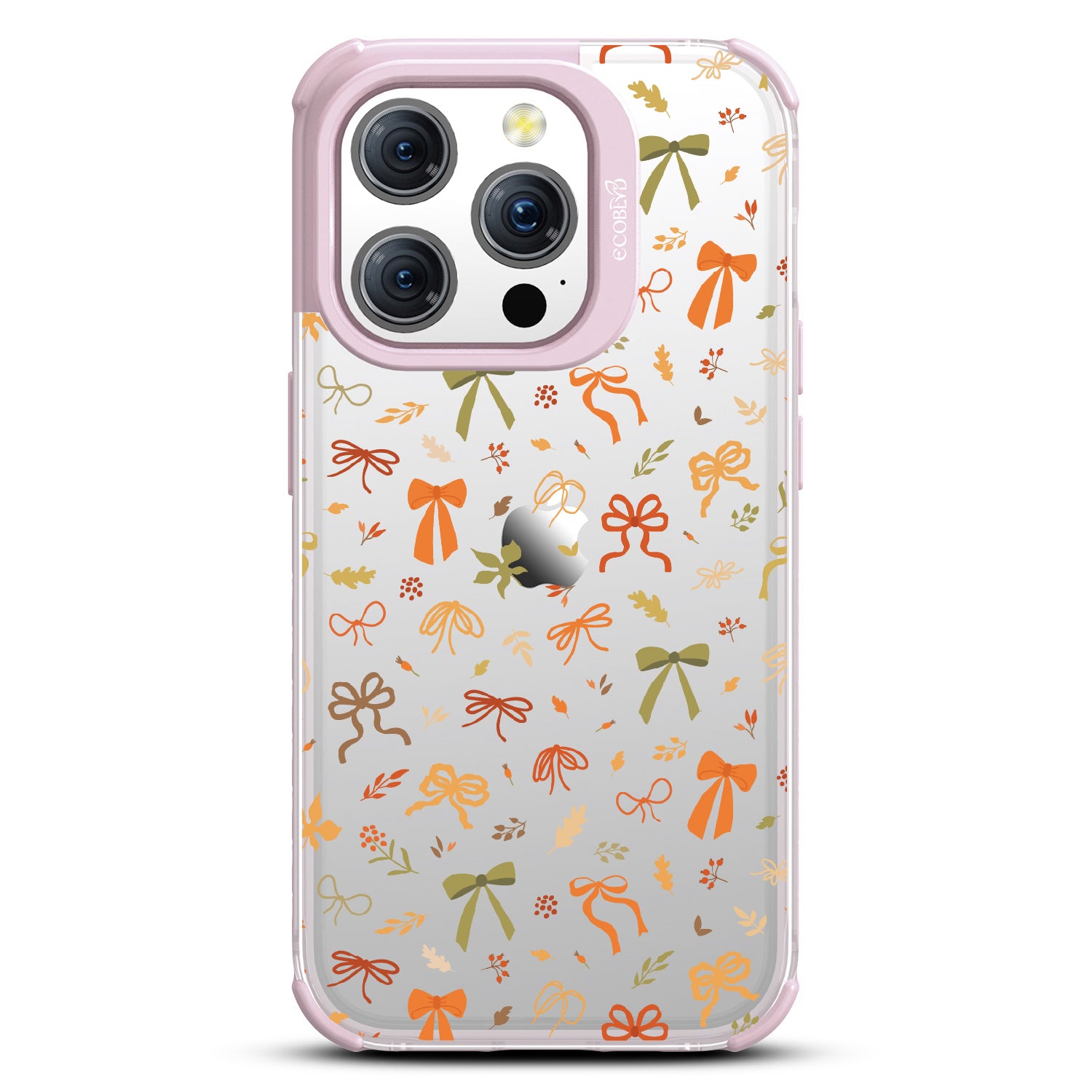Don’t leaf your style to chance—wrap it up with the Twirls and Twine design on our Laguna clear iPhone 15 Pro cases! This charming pattern features bows twirling among autumn blooms, making it the perfect girly twist for those cozy sweater days. For those who believe every season deserves a little twirl!