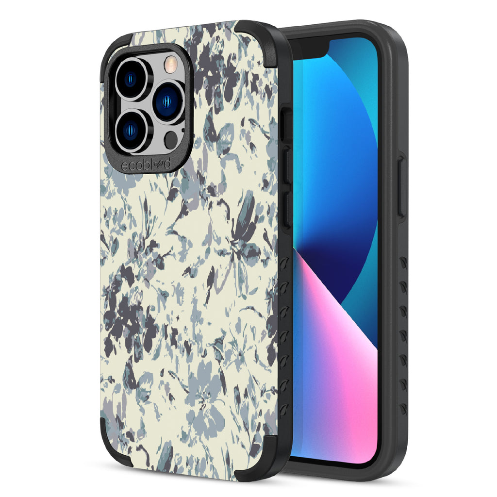 Carried by the wind, the Wind-Swept design on our Mojave rugged and compostable iPhone 13 Pro Max cases & iPhone 12 Pro Max cases drifts with soft blue and gray florals, as if scattered by a gentle breeze. This airy pattern mimics the movement of nature, with each petal seeming to dance in mid-flight. It’s a delicate balance of motion and stillness, capturing the beauty of the moment when the wind takes hold.