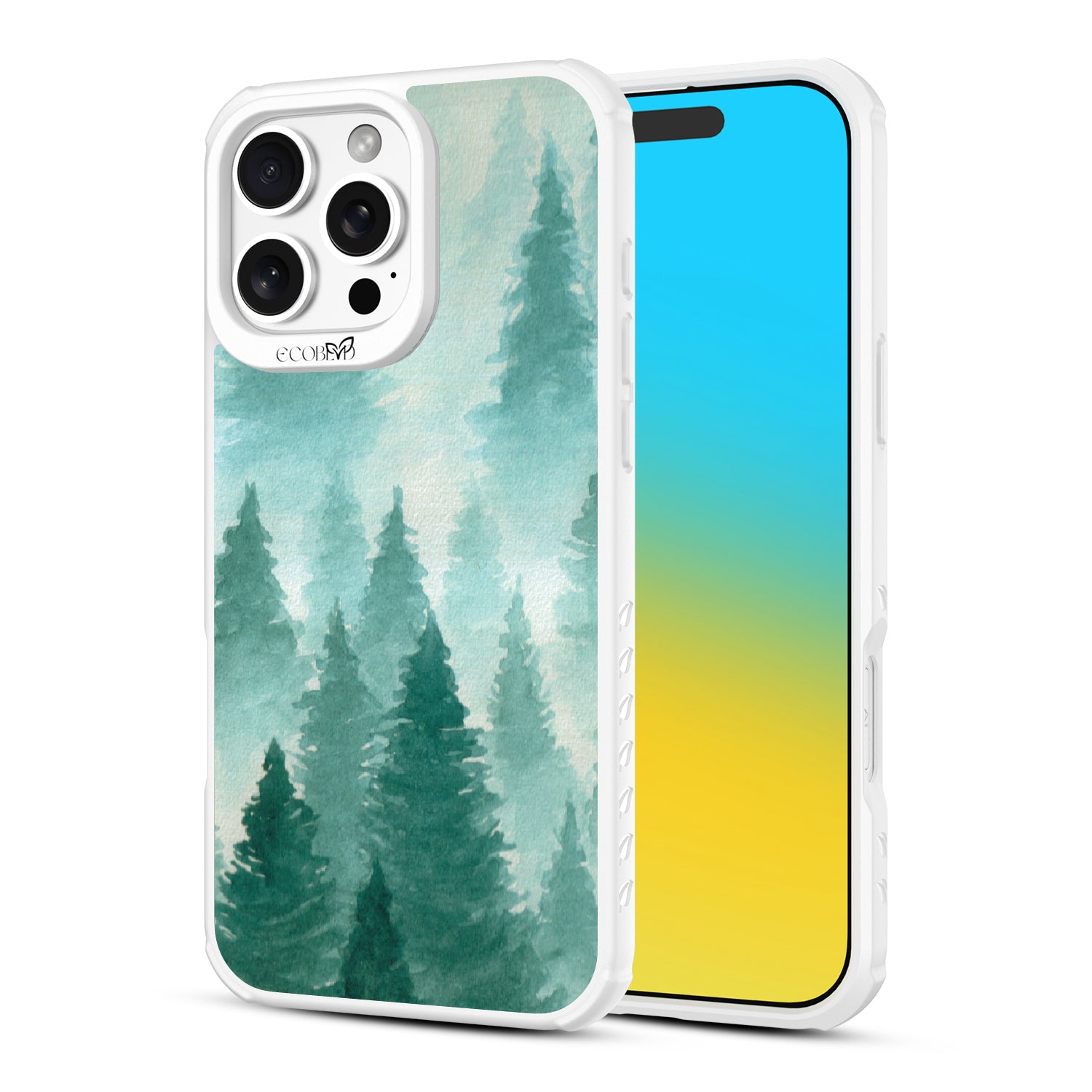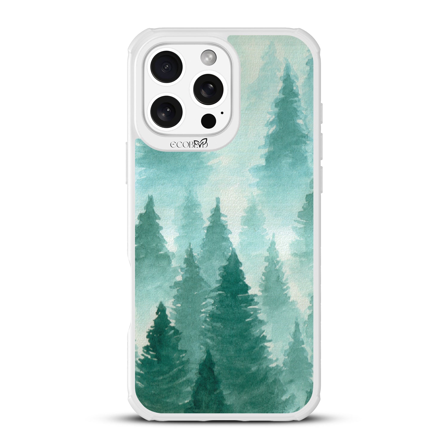 The Winter Pine design on our Revive clear iPhone 16 Pro Max phone case covers your phone in a serene scene of watercolored evergreens inspired by holiday treks in the woods to find the perfect tree