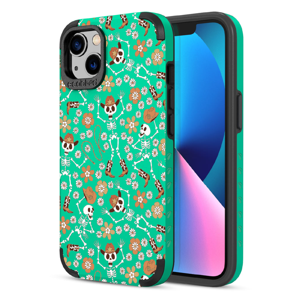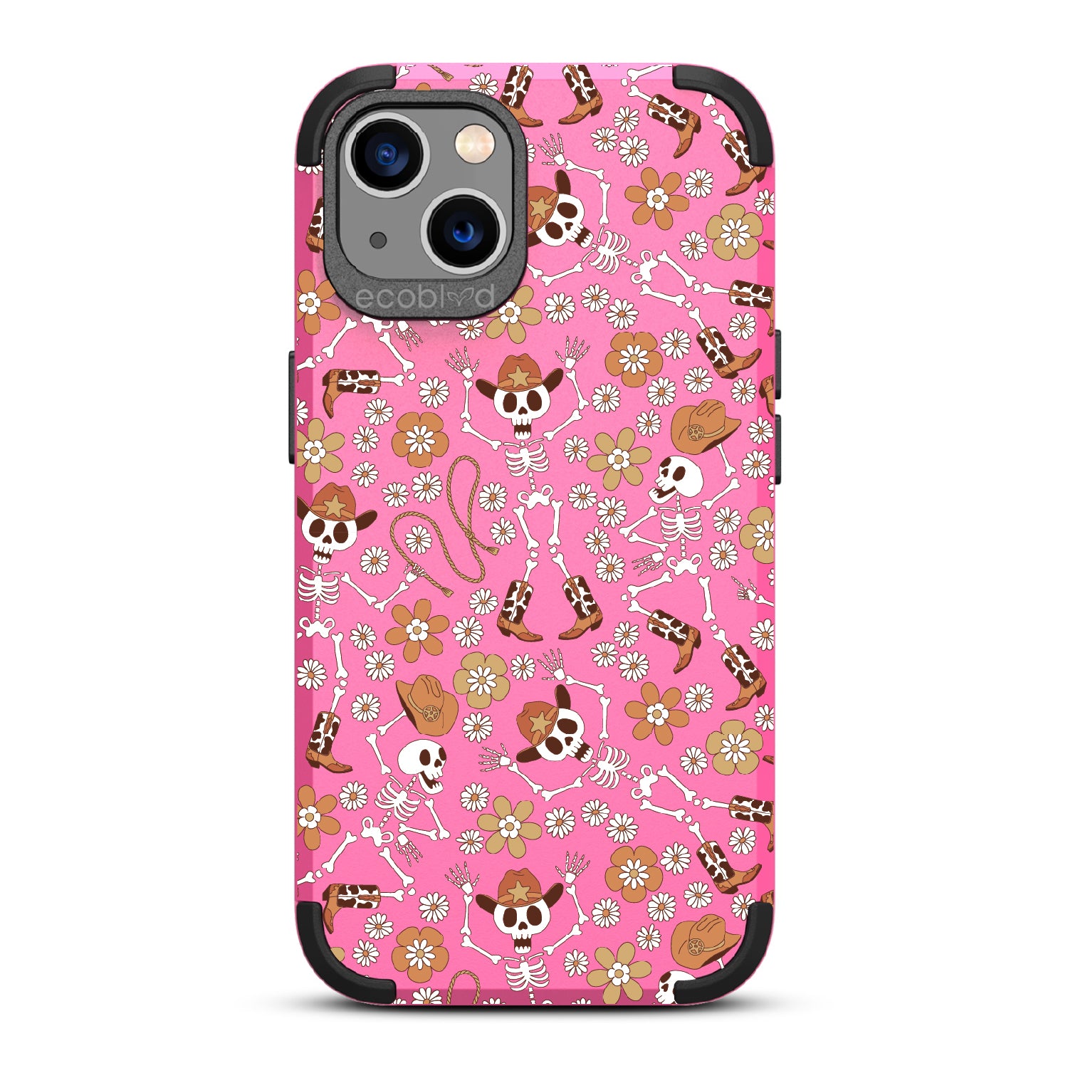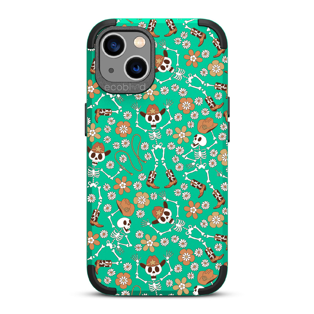 Ride into the spirit of the season with the Yee-Haunt design on our Mojave rugged and compostable iPhone 13 cases. Cowboy skeletons take center stage, adding a playful western twist to fall’s festivities. It’s a design that brings a dash of spooky fun to your everyday style.